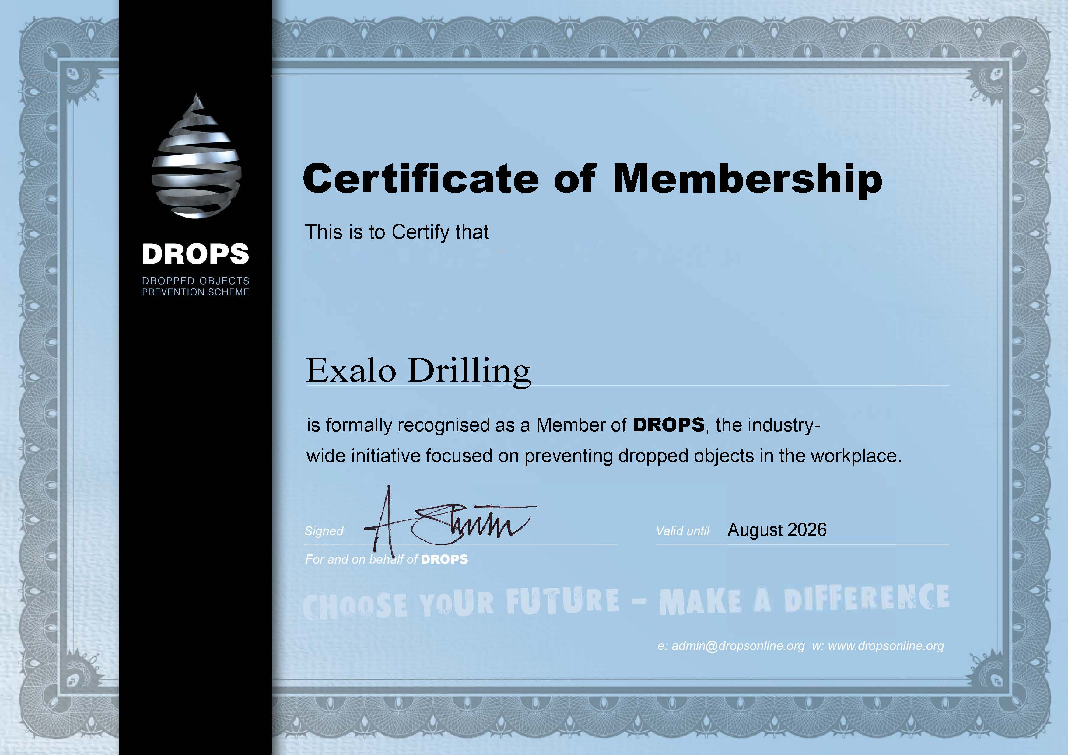 | DROPS | DROPS Certyfikat członkostwa (Dropped Objects Prevention Scheme) |